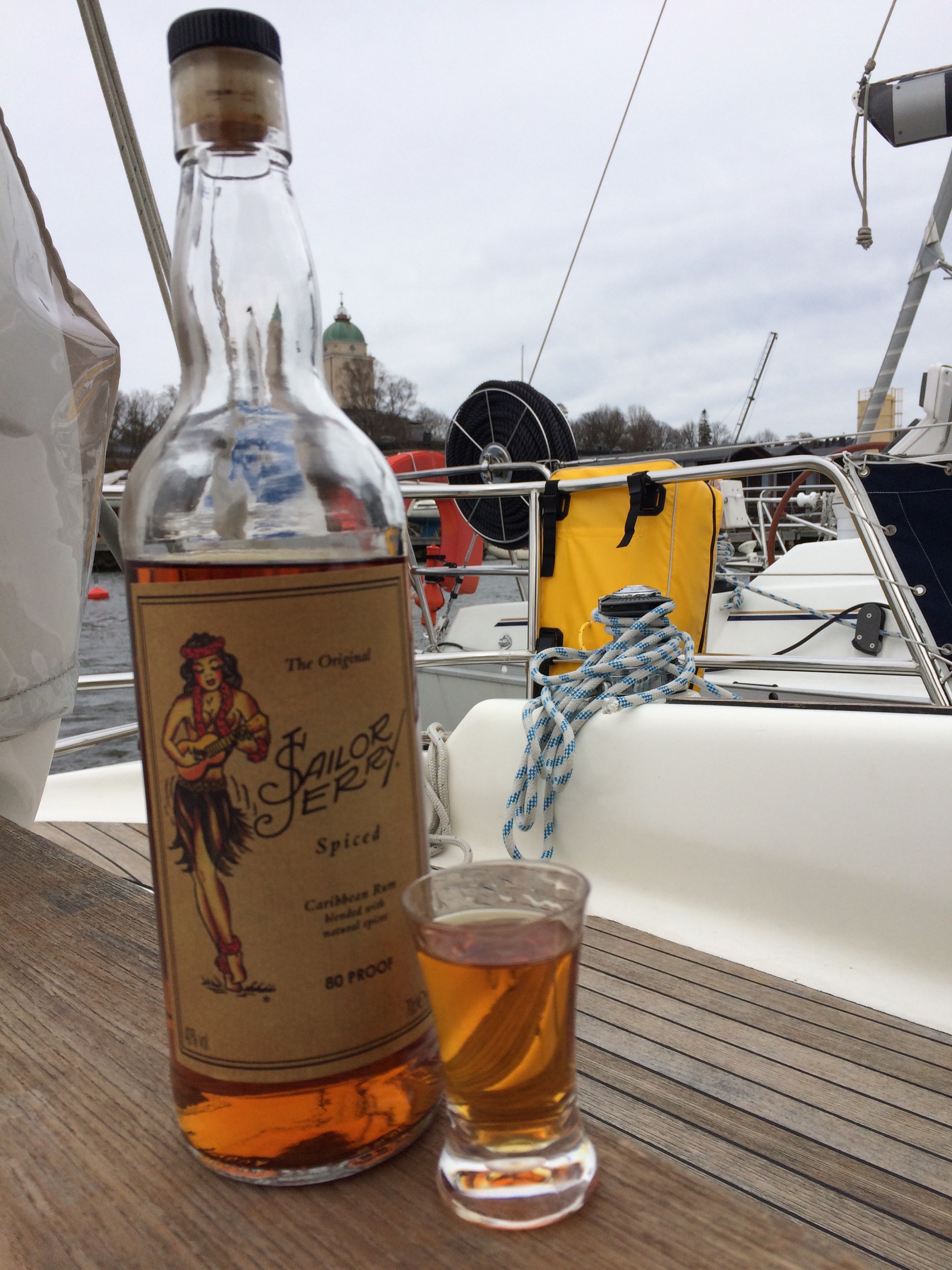 Lauantaina lepäillään, sillä vettä on luvattu ihan kahden pisaran edestä ja tuuli on vastainen. On hyvä aika tehdä muutama huoltotyö sekä käydä kaupassa ihmettelemässä.
