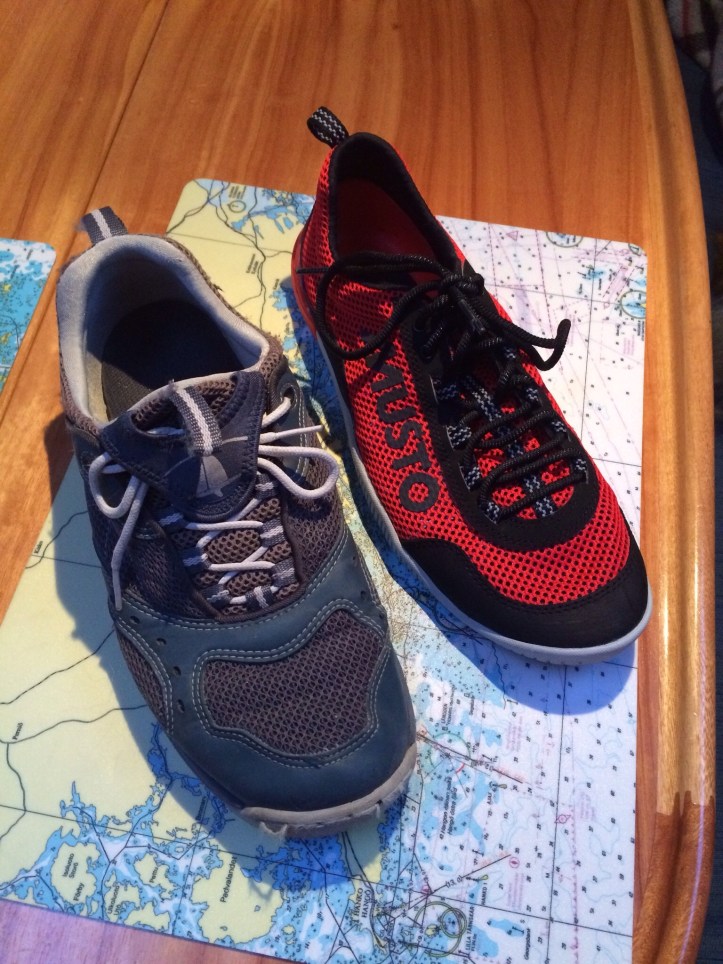 Lauttamatka, ratikka ja bussimatka myöhemmin pääsimme veneilijän paratiisiin Lauttasaareen. No, ehkä ei nyt ihan paratiisi koska kaikki kaupat eivät ole saman katon alla vaan saateessa piti siirtyä paikasta toiseen. Kauppareissu oli kuitenkin tällä kertaa suosiollinen. Kipparin kymmenen vuotta vanhat hanskat ja kengät saivat vihdoinkin seuraajat. Kun oikean tuntuinen koko vihdoinkin löytyy, lienee syytä ottaa heti. Kapteenskakin löysi housua ja hametta matkalle osuneesta Haltin Outlet-myymälästä.