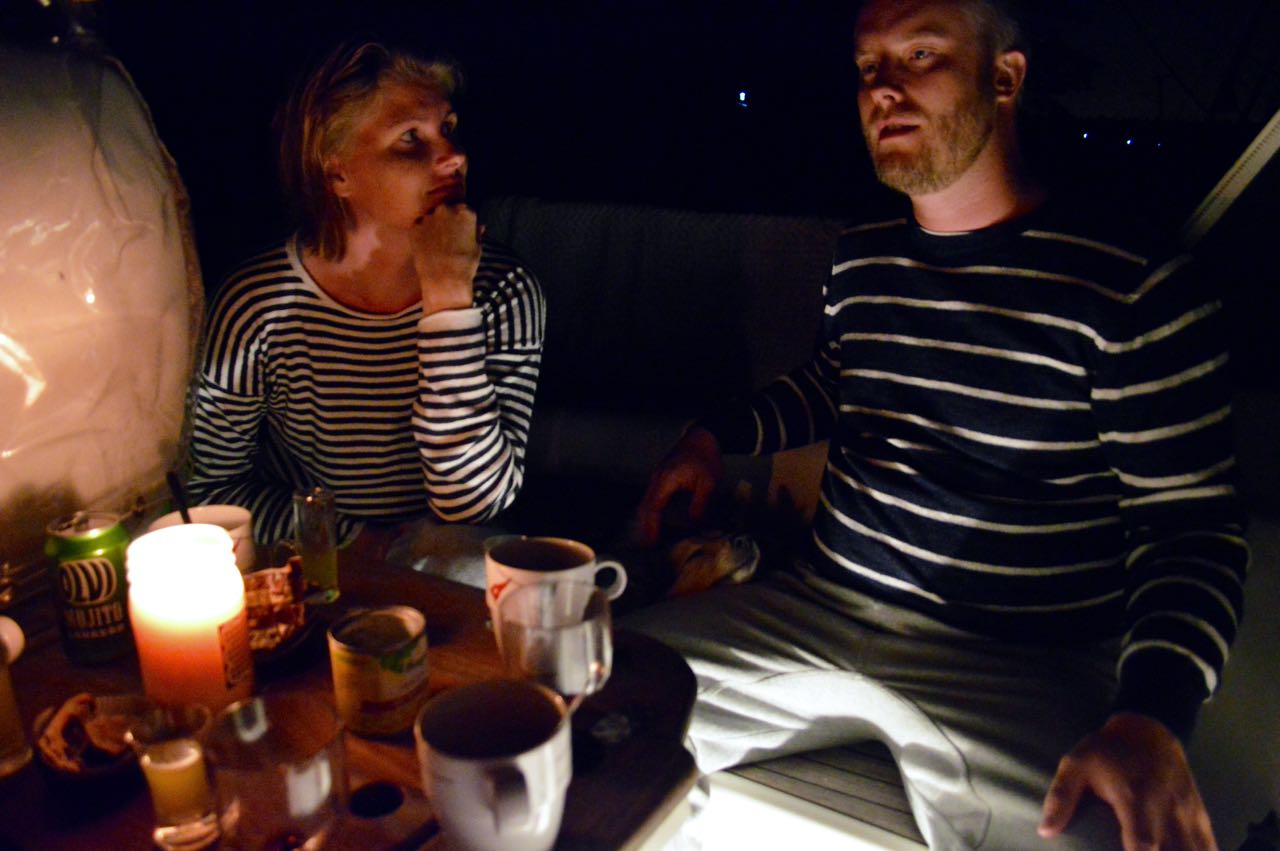 Päivä oli niin mukava, että päätimme kiertää Killingholmeniin hieman pidemmän kautta. Kippari muisti lauantain saunavuorot hieman väärin, ja naistenvuoro oli juuri päättymässä kun rantauduimme. Teimme lennosta aikataulumuutoksen, pojat hyppäsivät heti saunaan ja tytöt saivat vuoron illan pimeyteen. Siihen väliin saimme mahtavasti mahtumaan illallisen.