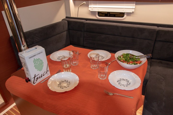 We decided to pick the same boat and charter company. So we’re back on board the beautiful Hanse 388 “Banjo”. And one year of charter operations hasn’t affected her at all. She’s had good guests and loving care, thanks to Qsail Charter who owns the boat and I think especially Damir at Pelsys Charter in Marina Frapa, who takes care of her.