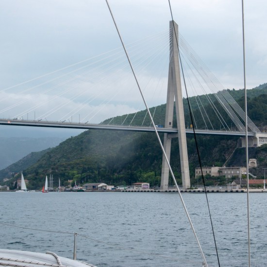 When we were out of the bay, a lovely 12-15 knots of breeze hit us on the nose. We started tacking towards Dubrovnik. Just as we were by the small island of Daksa outside the port of Gruz, we were hit by the first shower. It was time to take the sails down anyway, since the wind would not have helped us along the narrow bay to the ACI Marina Dubrovnik.